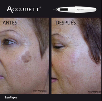 La tecnología más avanzada para borrar imperfecciones. Accurett es un tratamiento vanguardista y no invasivo que utiliza la crioterapia (congelación de máxima precisión) para la eliminación definitiva de lesiones cutáneas benignas, como manchas de la edad, lentigos solares, puntos rubí y otras queratosis. Es la solución profesional para una piel uniforme y renovada.